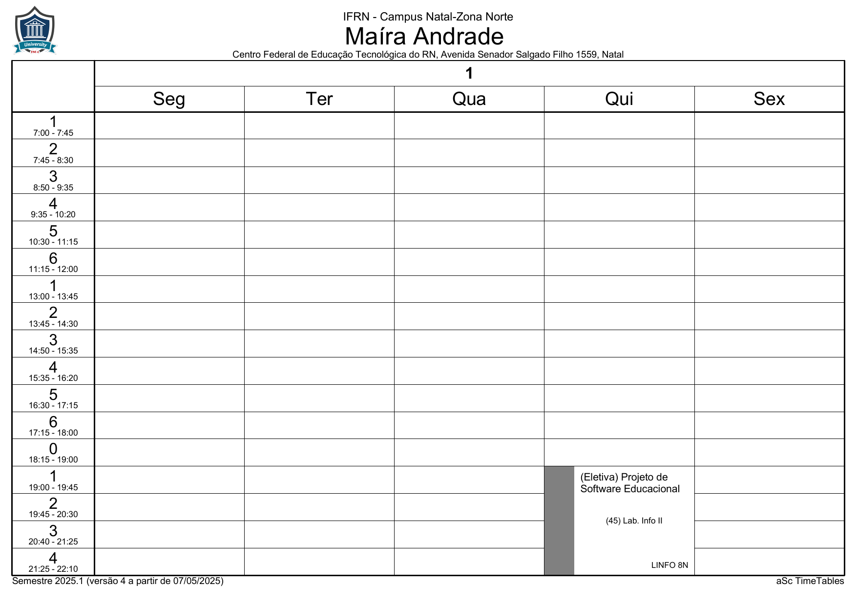 IFRN/ZN: Horário Acadêmico