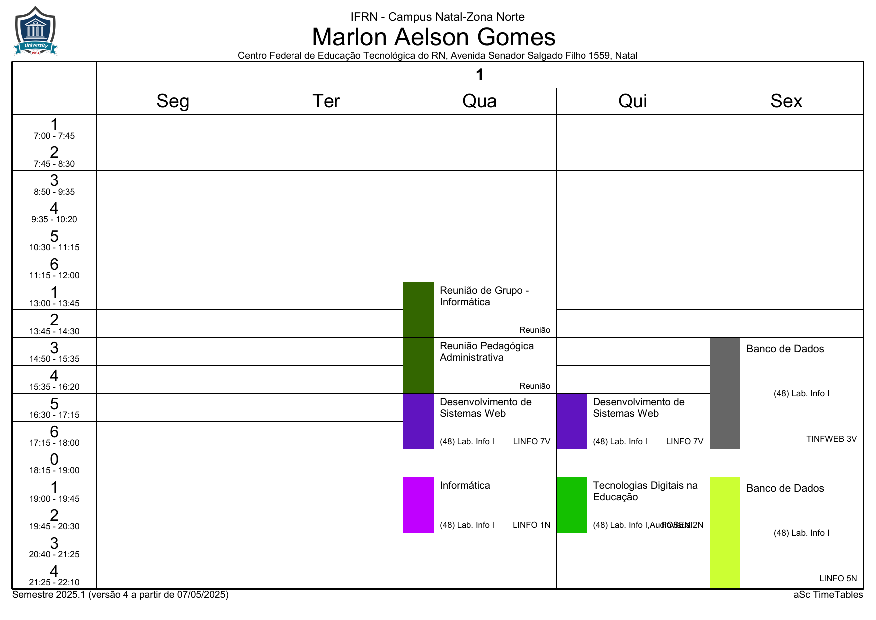 IFRN/ZN: Horário Acadêmico