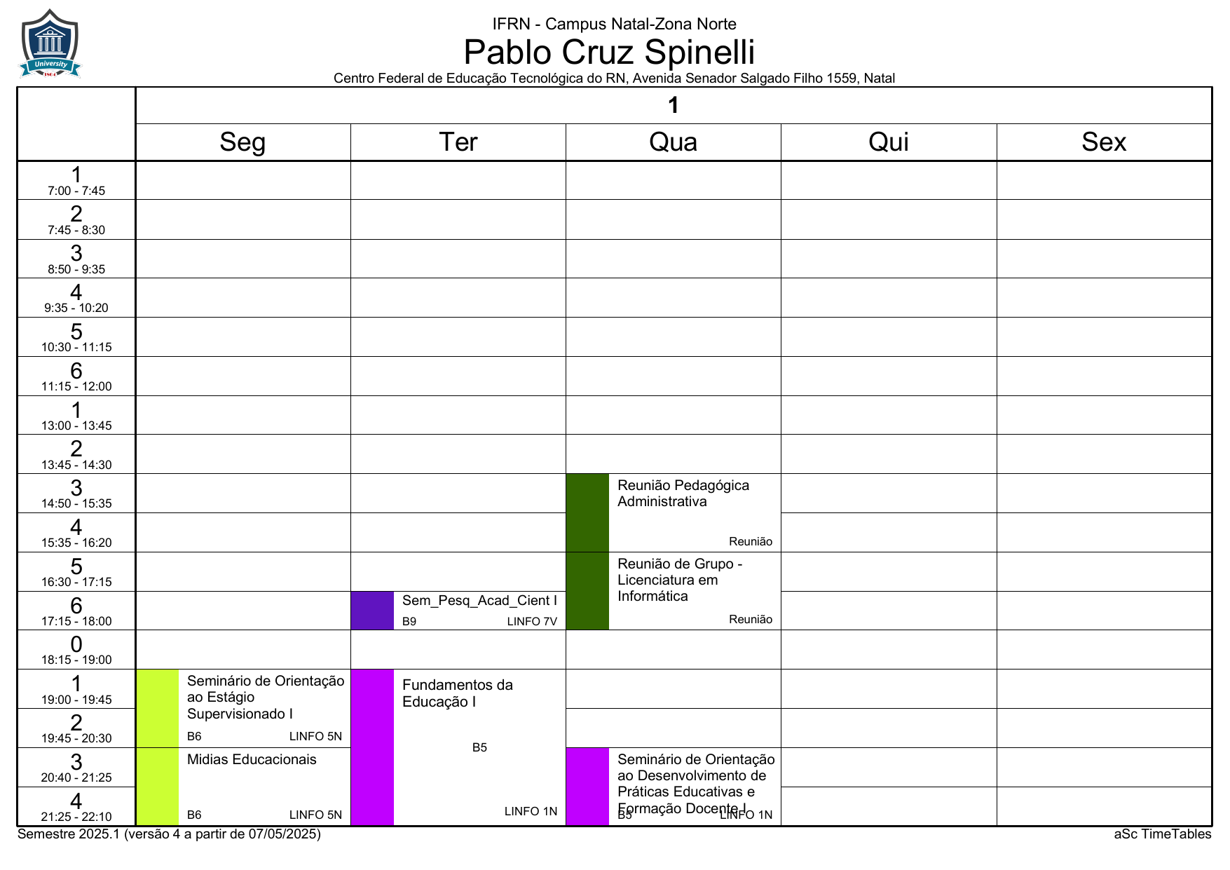IFRN/ZN: Horário Acadêmico