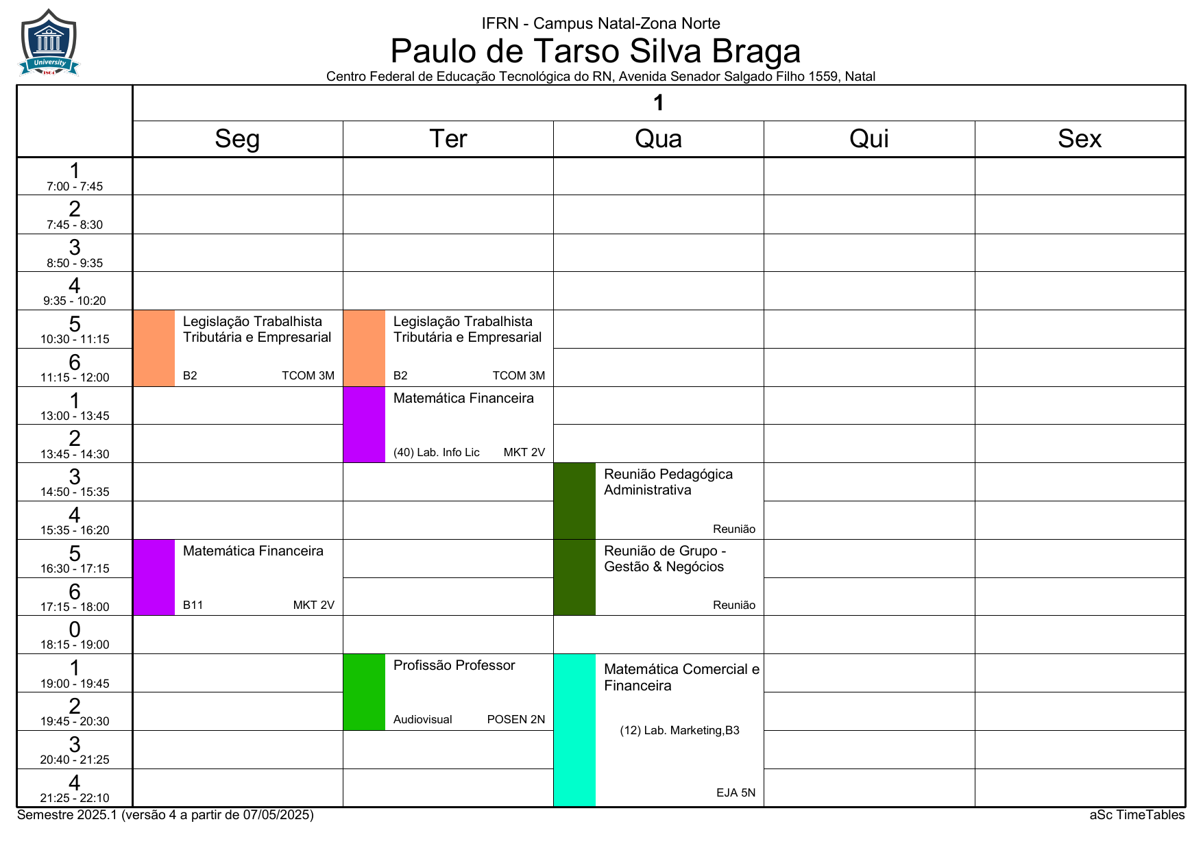 IFRN/ZN: Horário Acadêmico