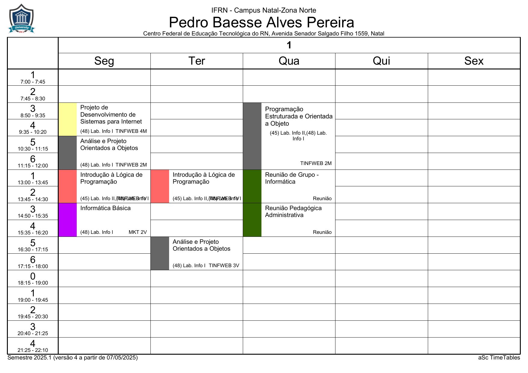 IFRN/ZN: Horário Acadêmico