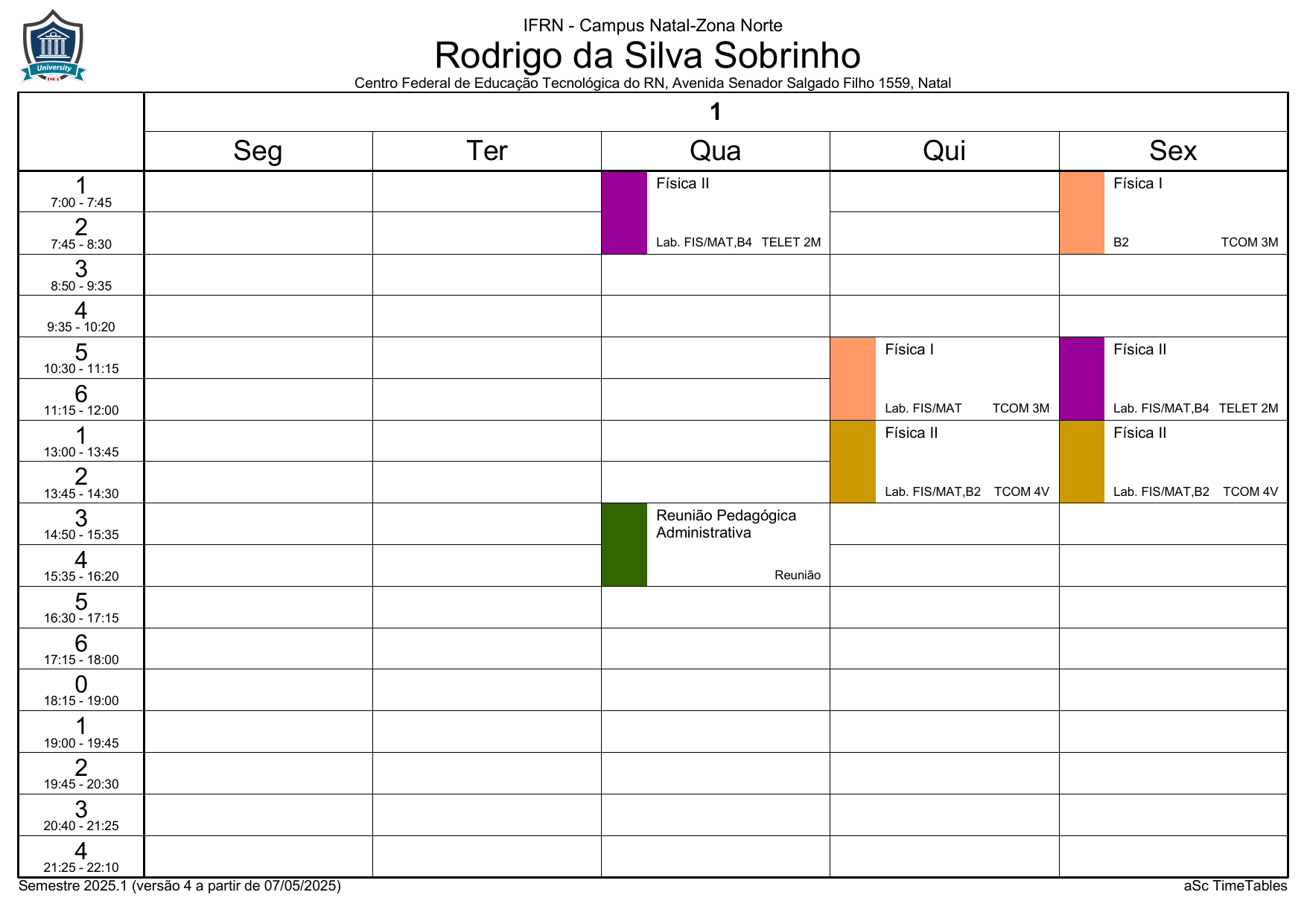 IFRN/ZN: Horário Acadêmico