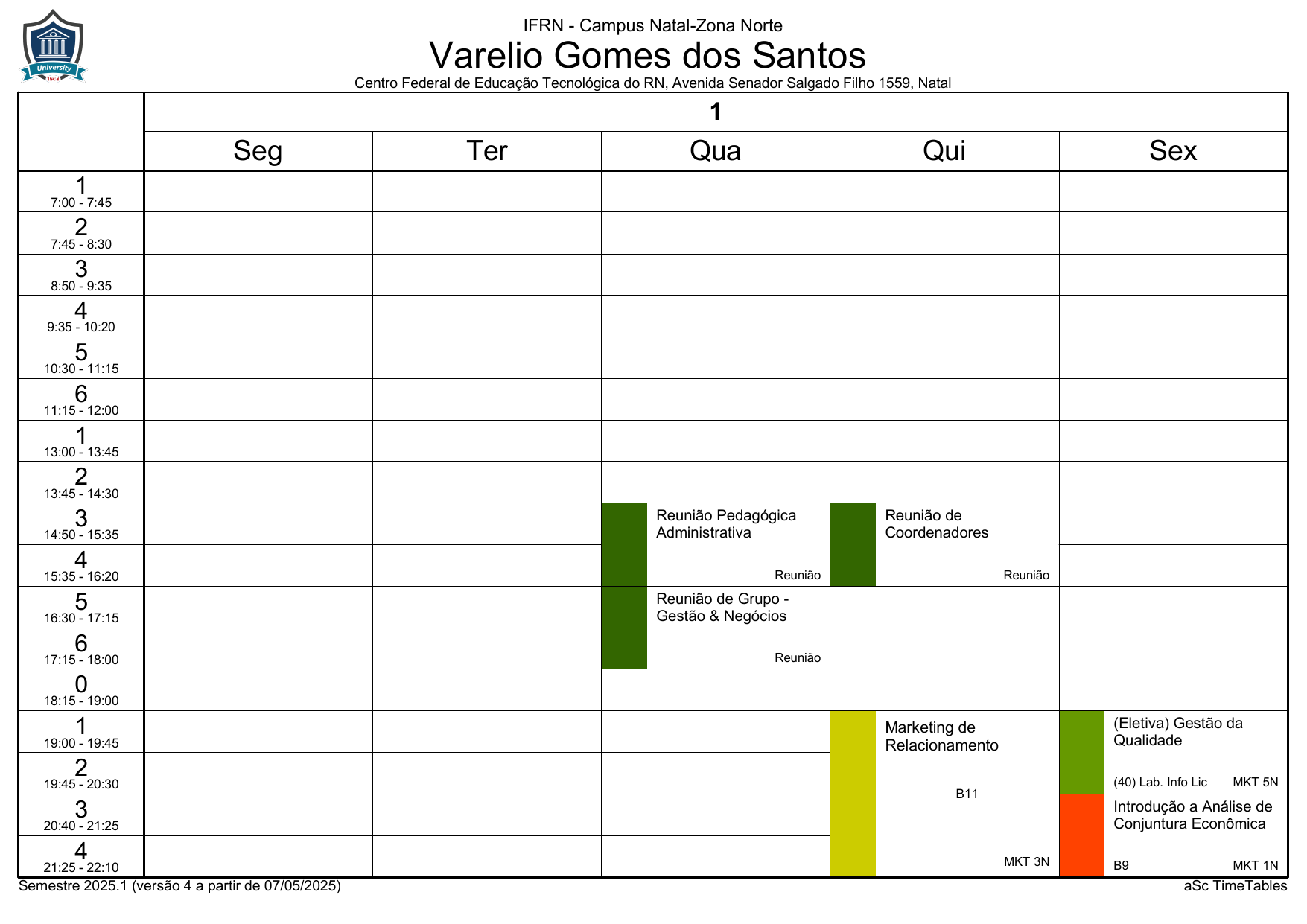 IFRN/ZN: Horário Acadêmico