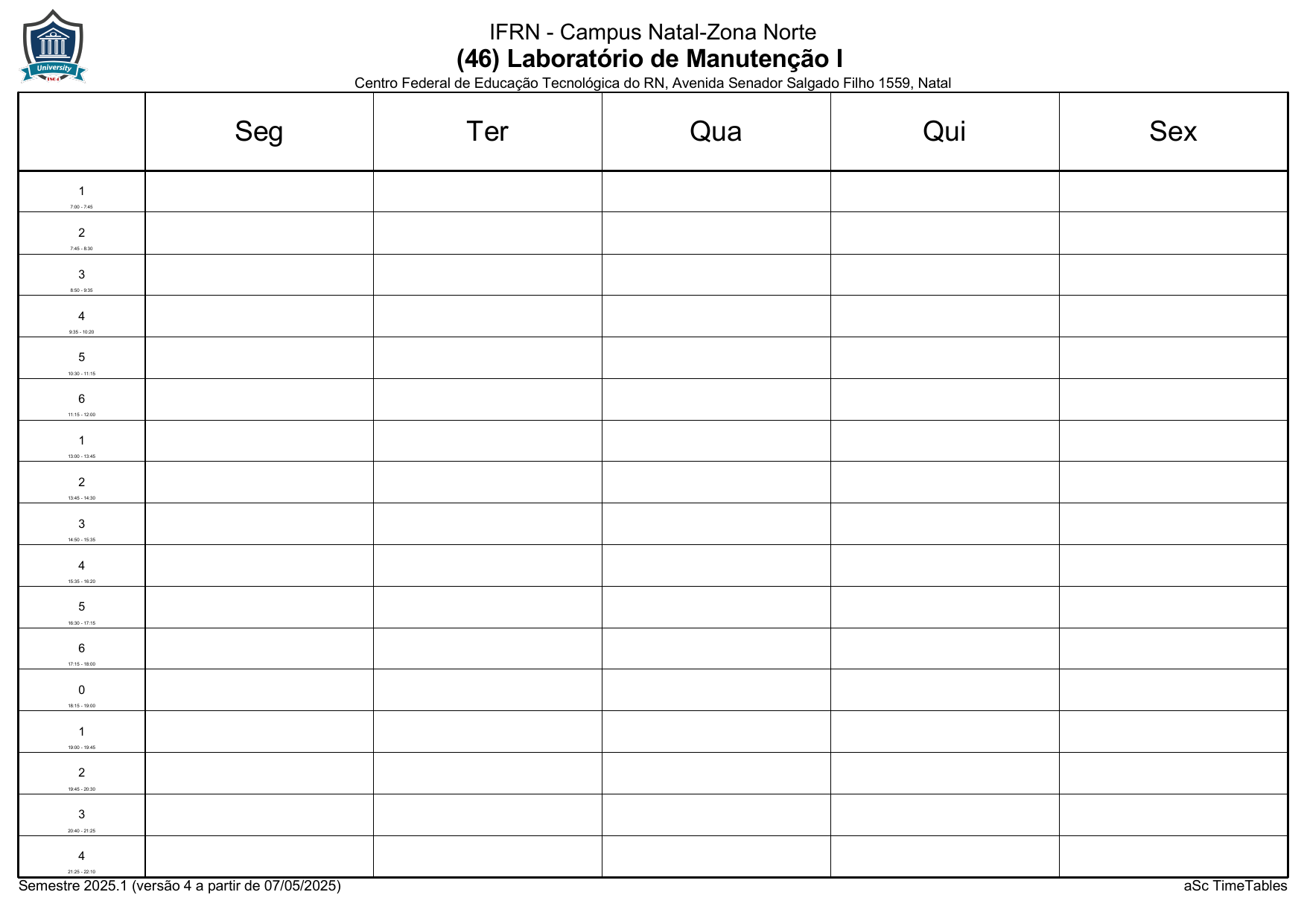 IFRN/ZN: Horário Acadêmico