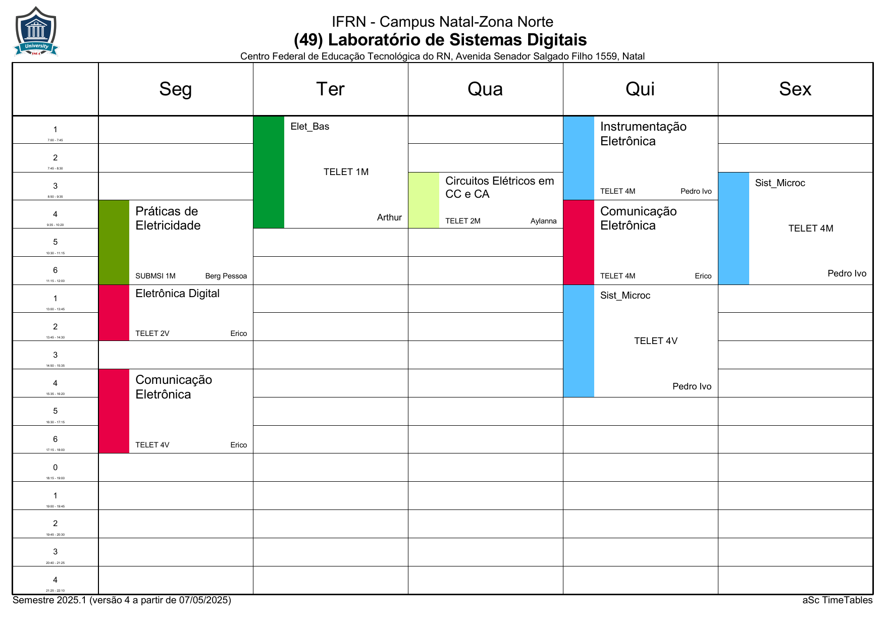 IFRN/ZN: Horário Acadêmico