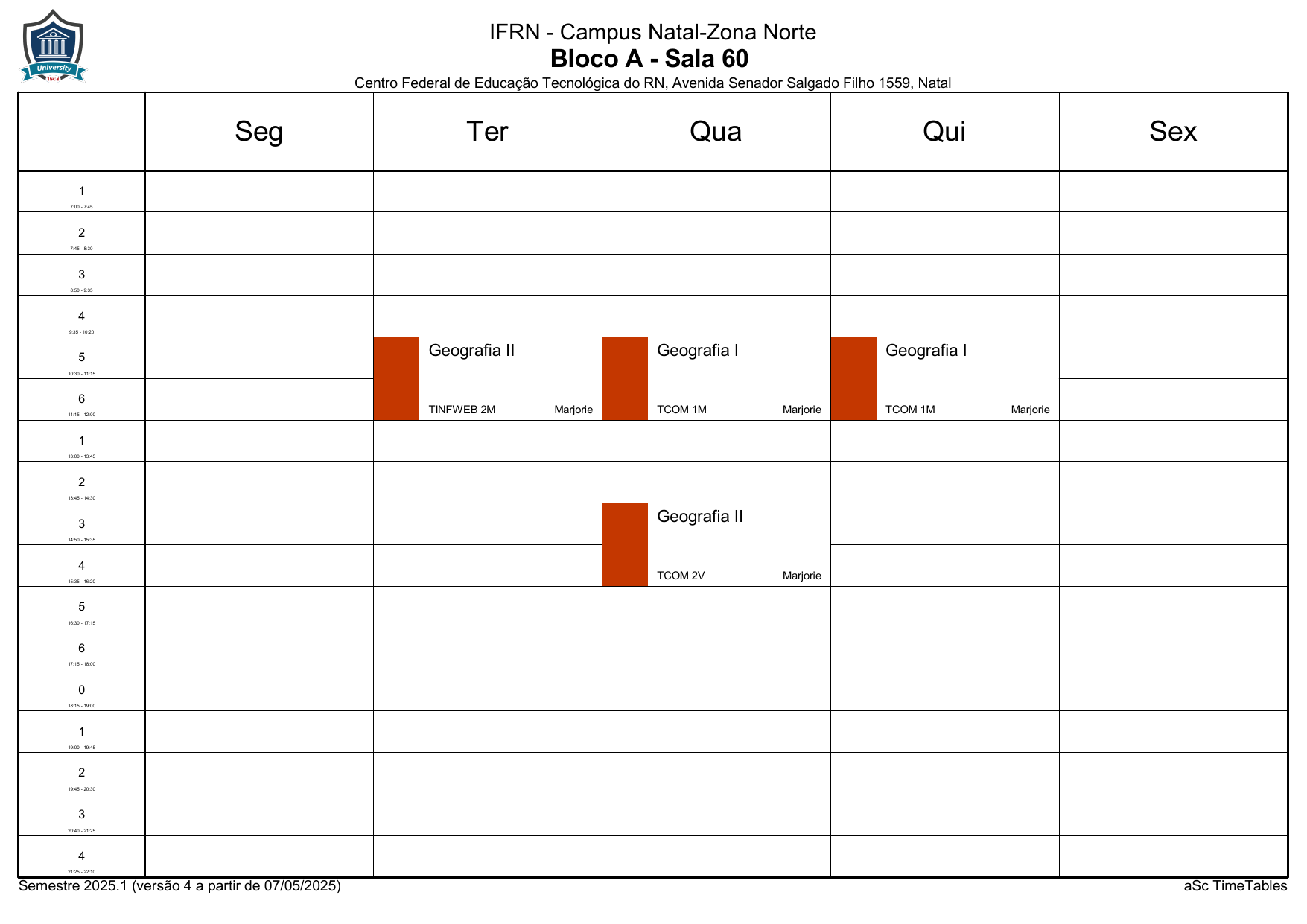 IFRN/ZN: Horário Acadêmico