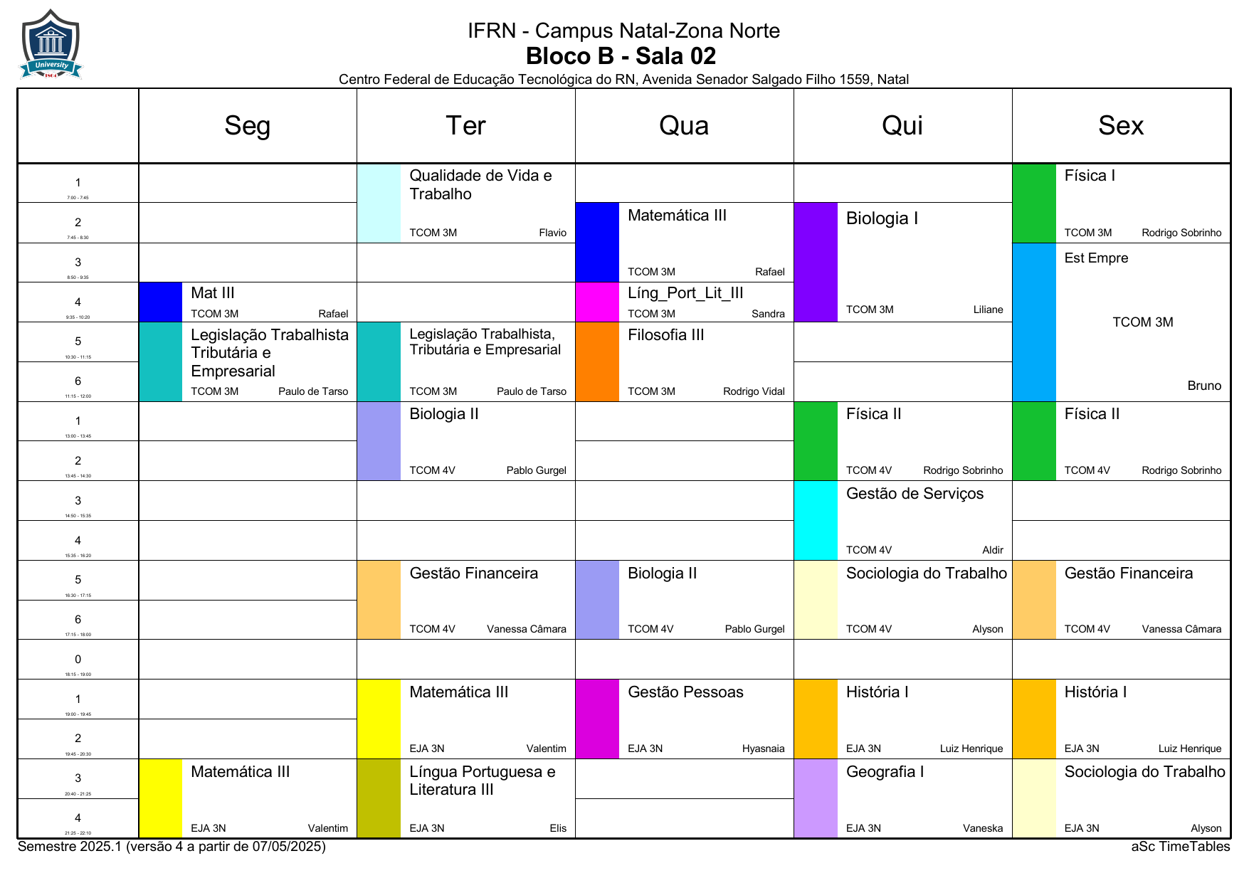 IFRN/ZN: Horário Acadêmico