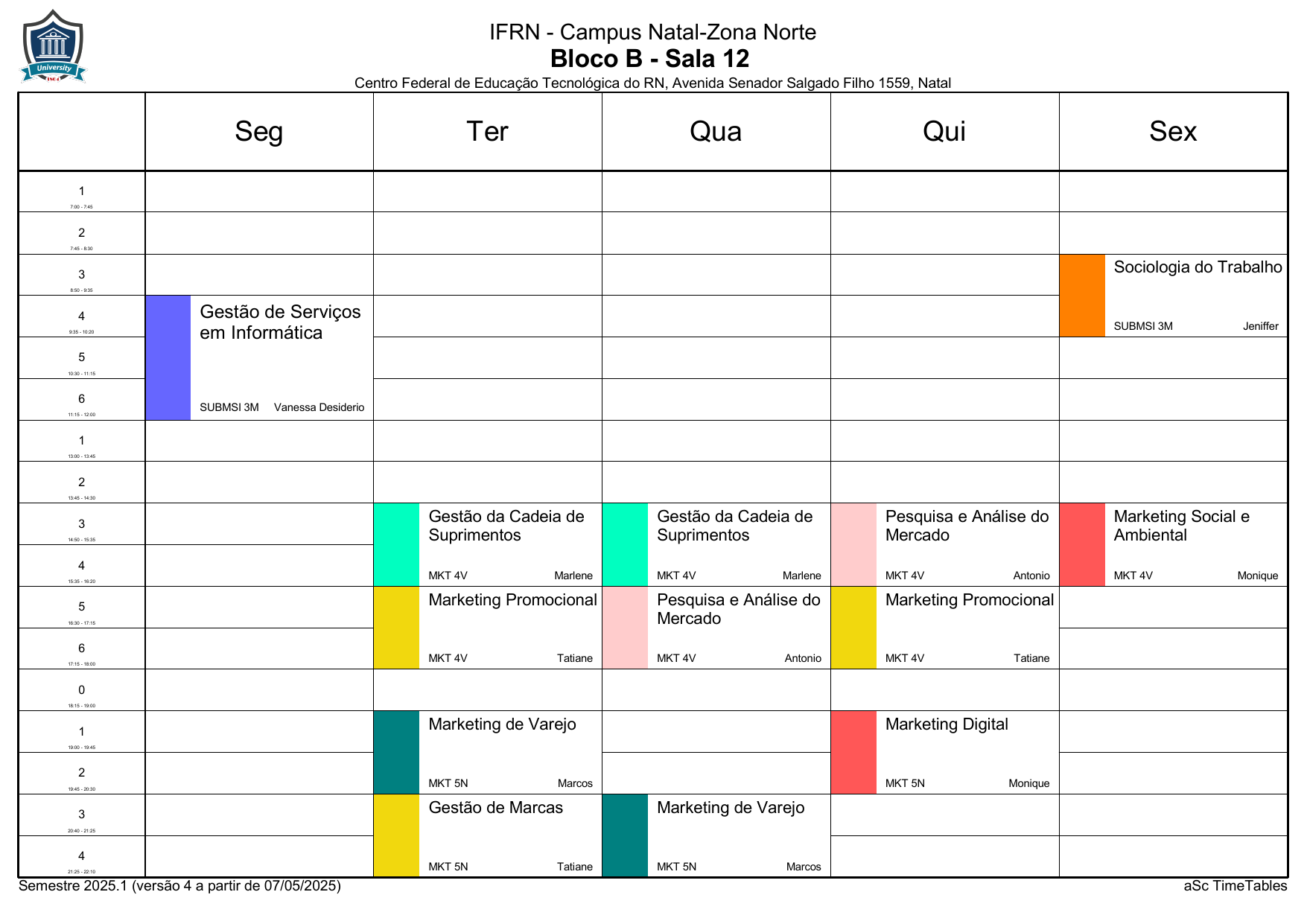 IFRN/ZN: Horário Acadêmico