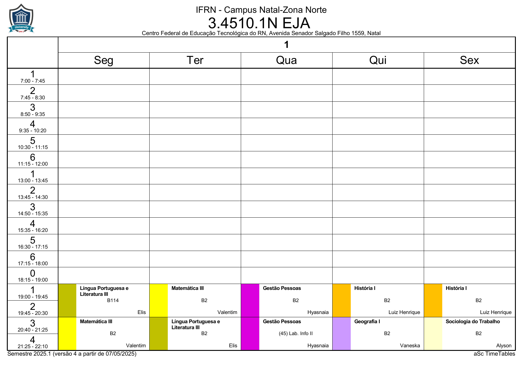 IFRN/ZN: Horário Acadêmico