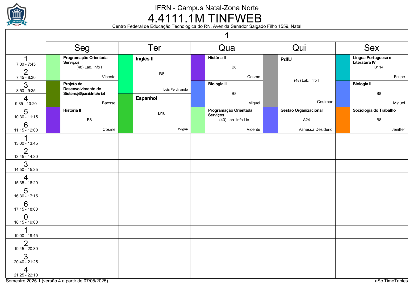 IFRN/ZN: Horário Acadêmico
