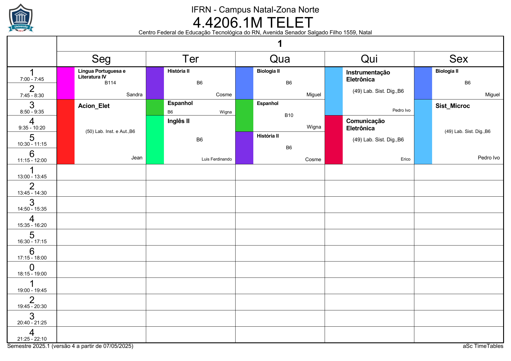 IFRN/ZN: Horário Acadêmico
