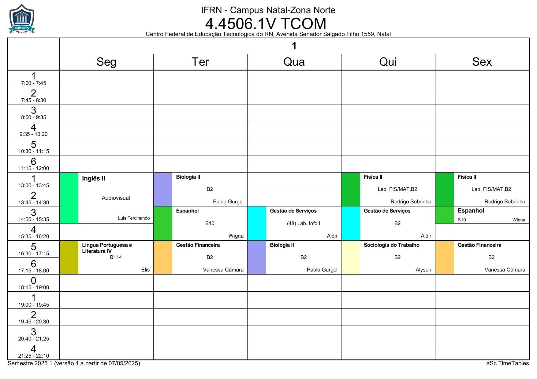 IFRN/ZN: Horário Acadêmico