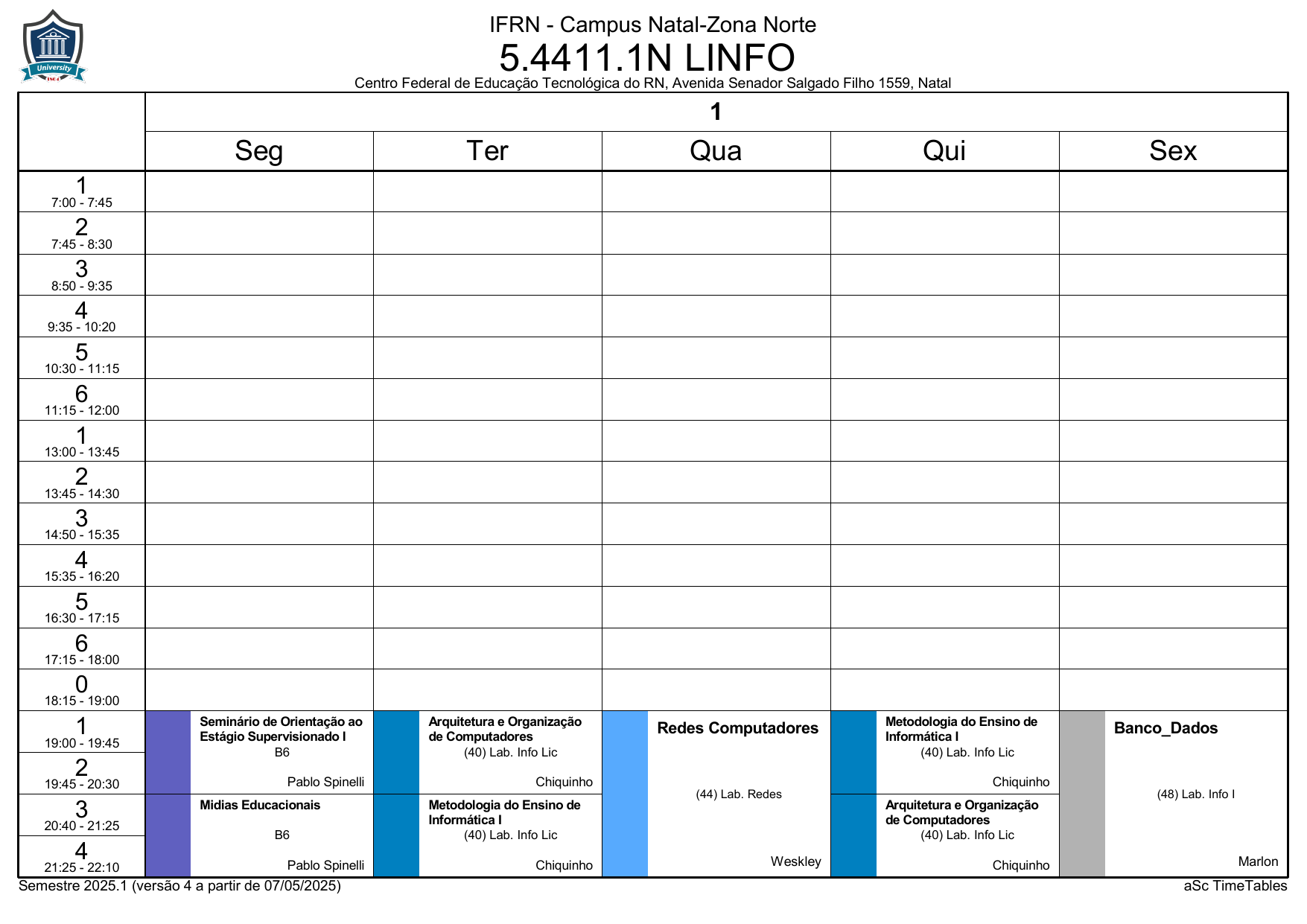 IFRN/ZN: Horário Acadêmico