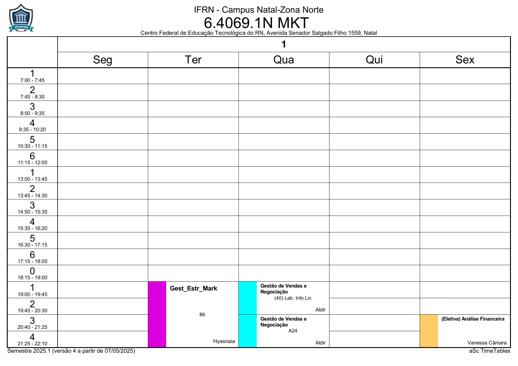 IFRN/ZN: Horário Acadêmico