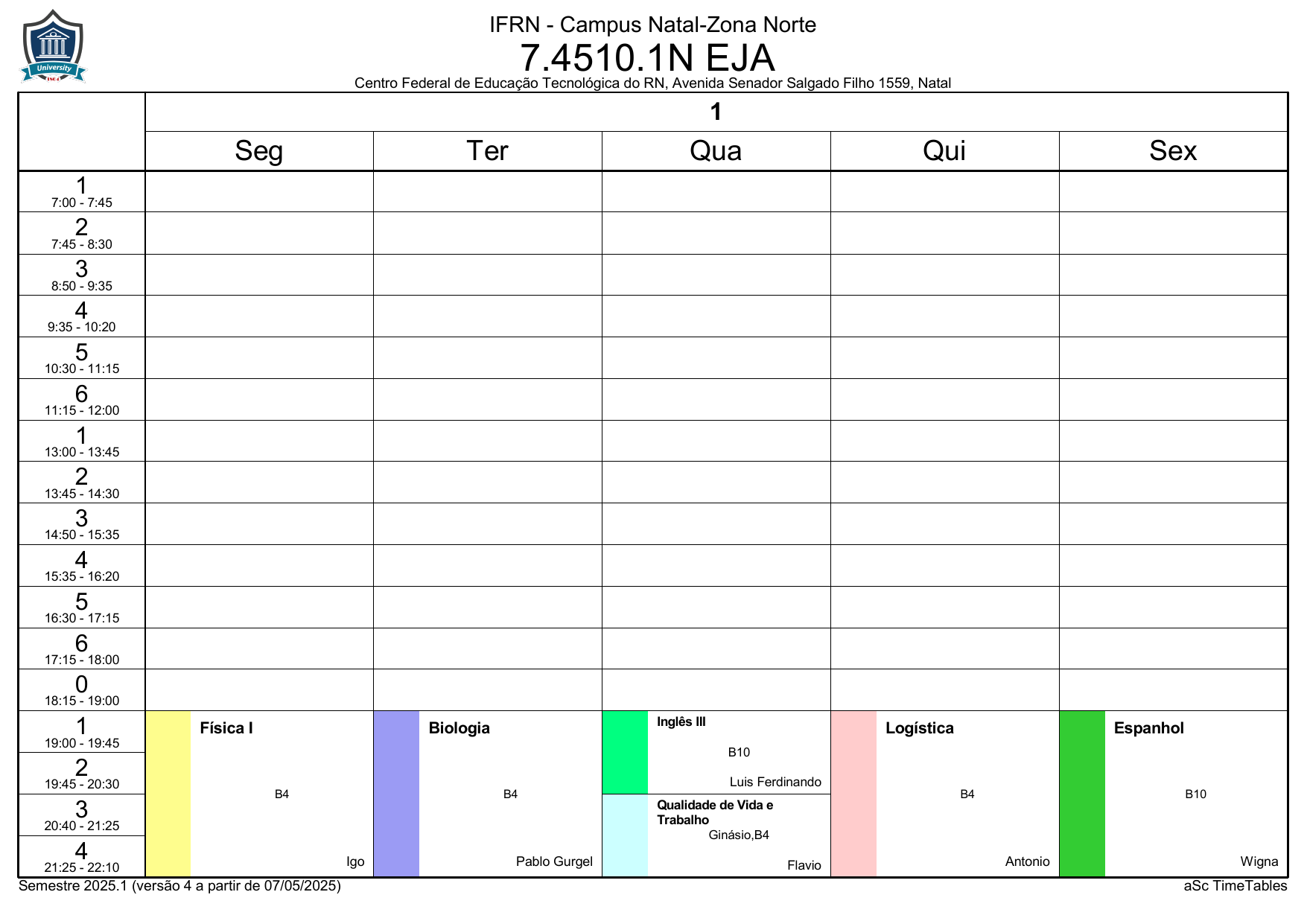 IFRN/ZN: Horário Acadêmico