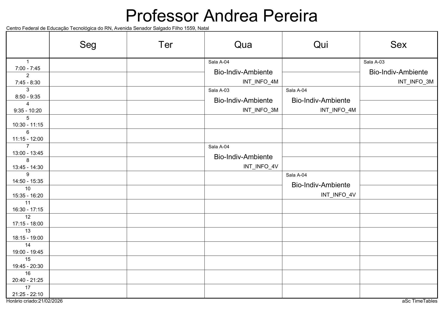 IFRN/Parnamirim: Horário Acadêmico