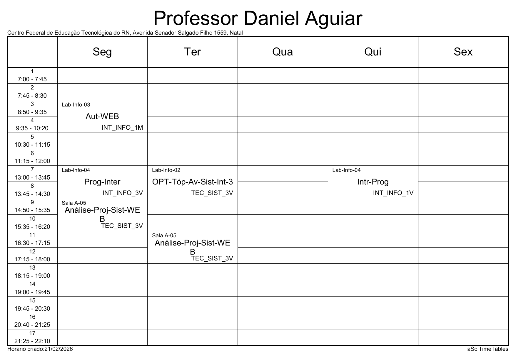 IFRN/Parnamirim: Horário Acadêmico