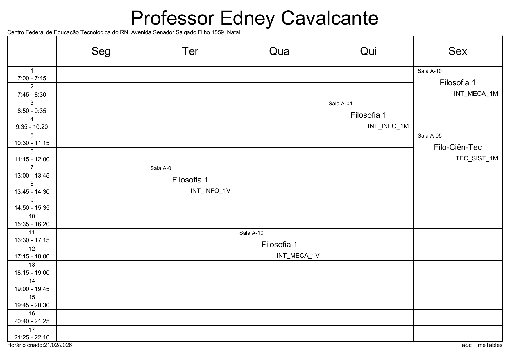 IFRN/Parnamirim: Horário Acadêmico