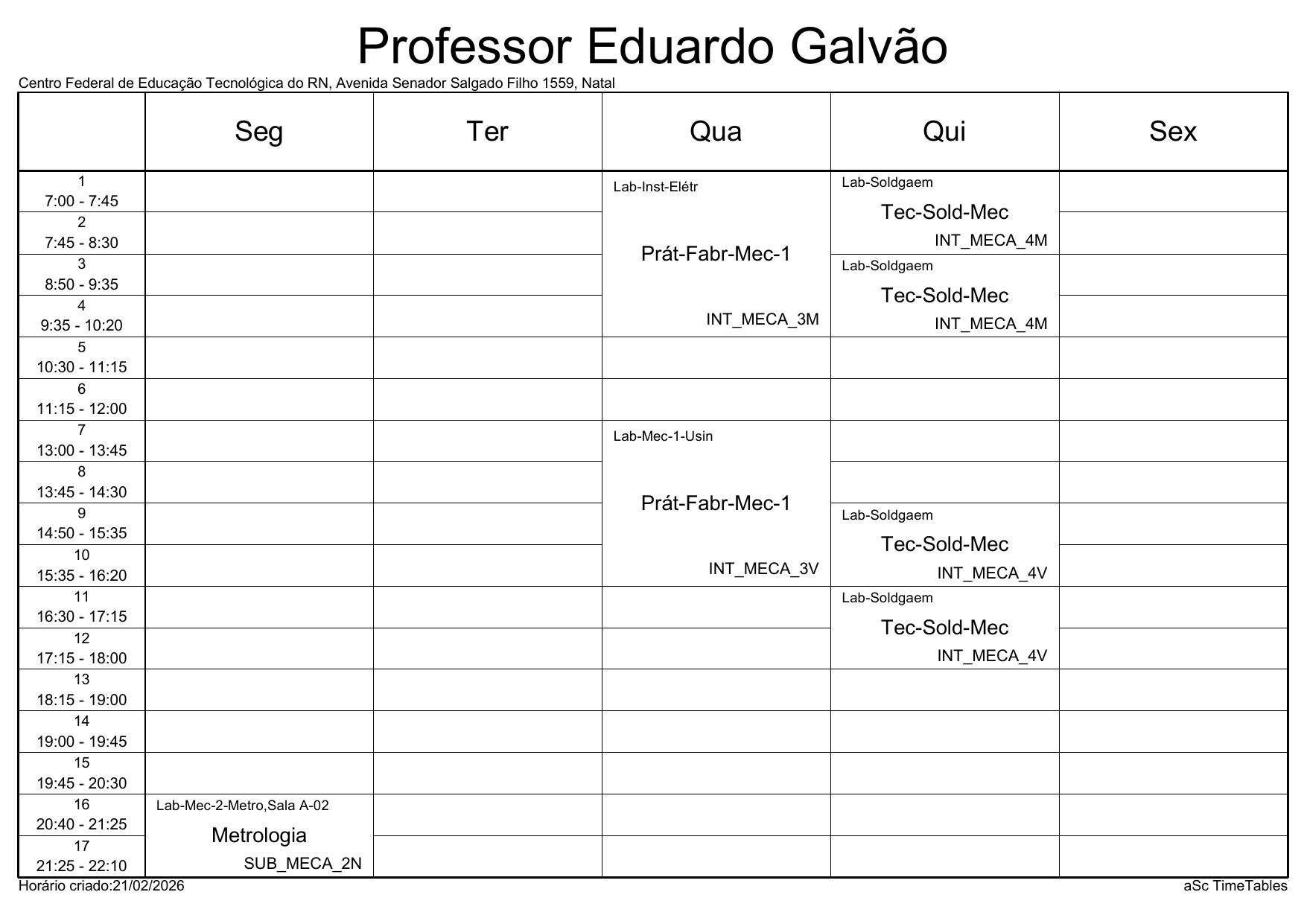 IFRN/Parnamirim: Horário Acadêmico