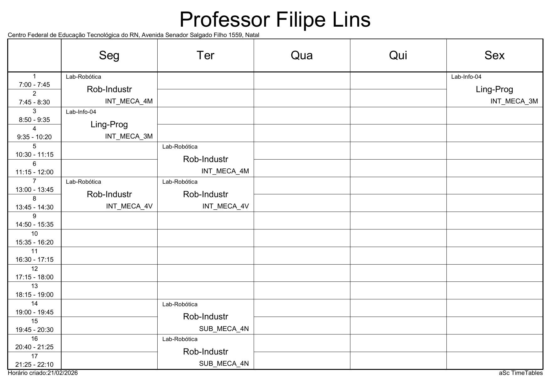 IFRN/Parnamirim: Horário Acadêmico