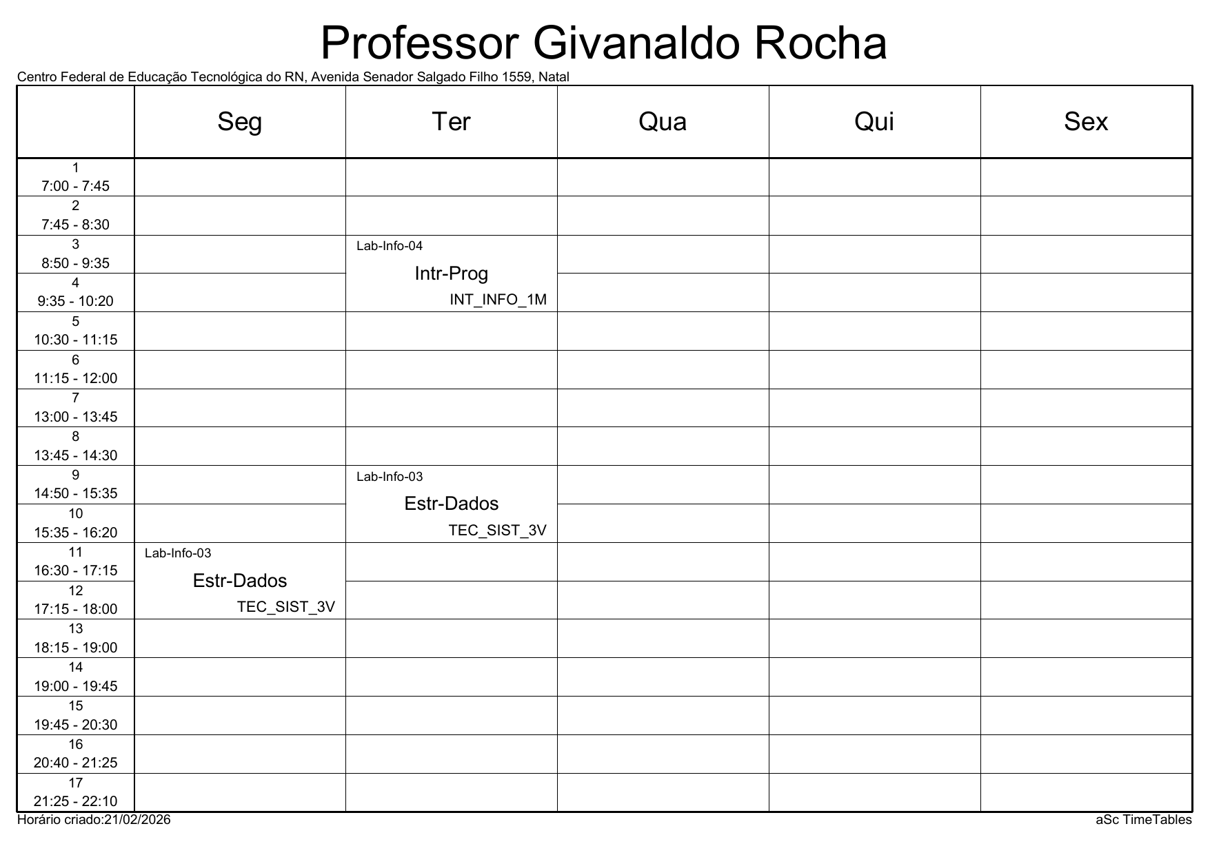IFRN/Parnamirim: Horário Acadêmico