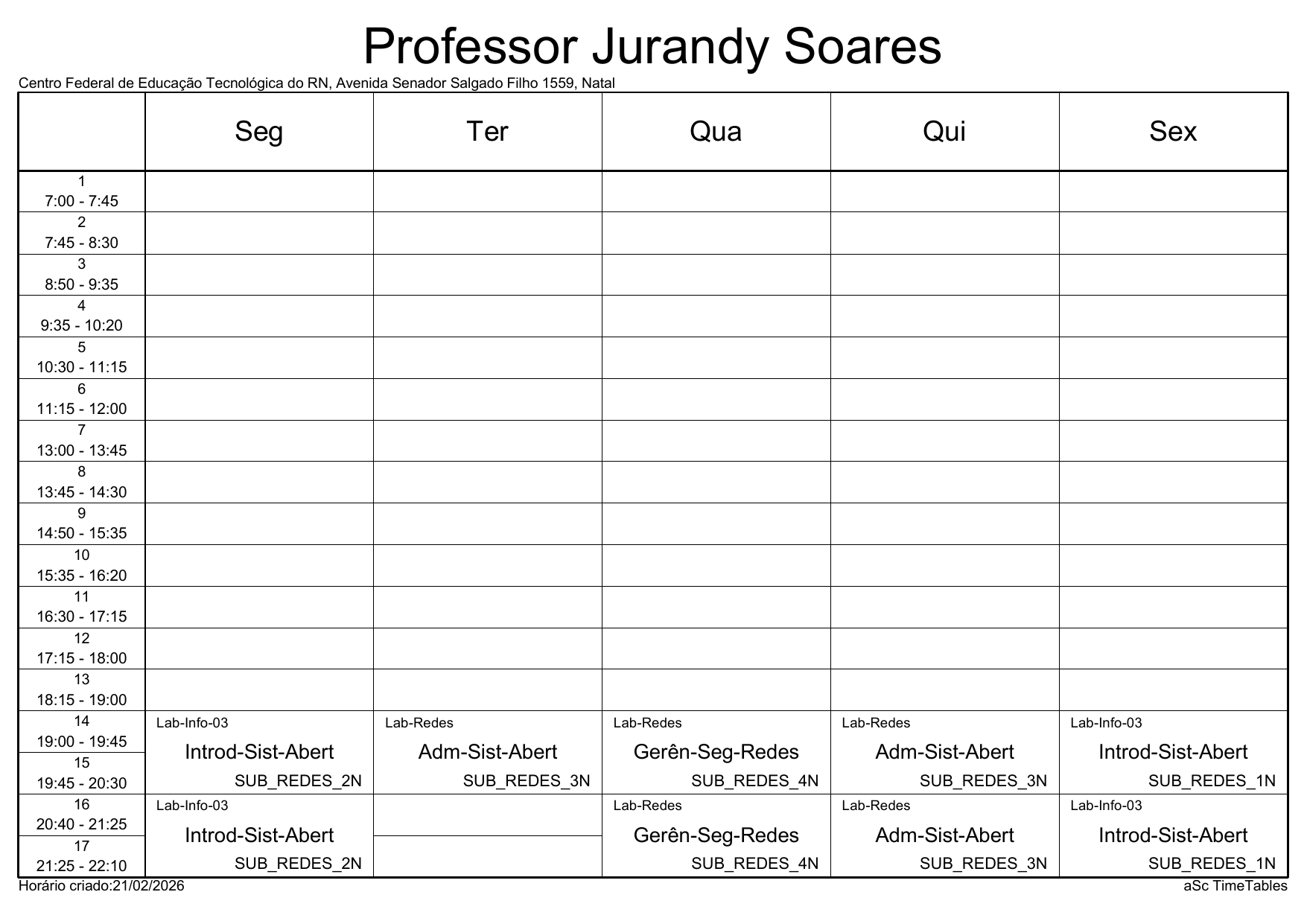 IFRN/Parnamirim: Horário Acadêmico