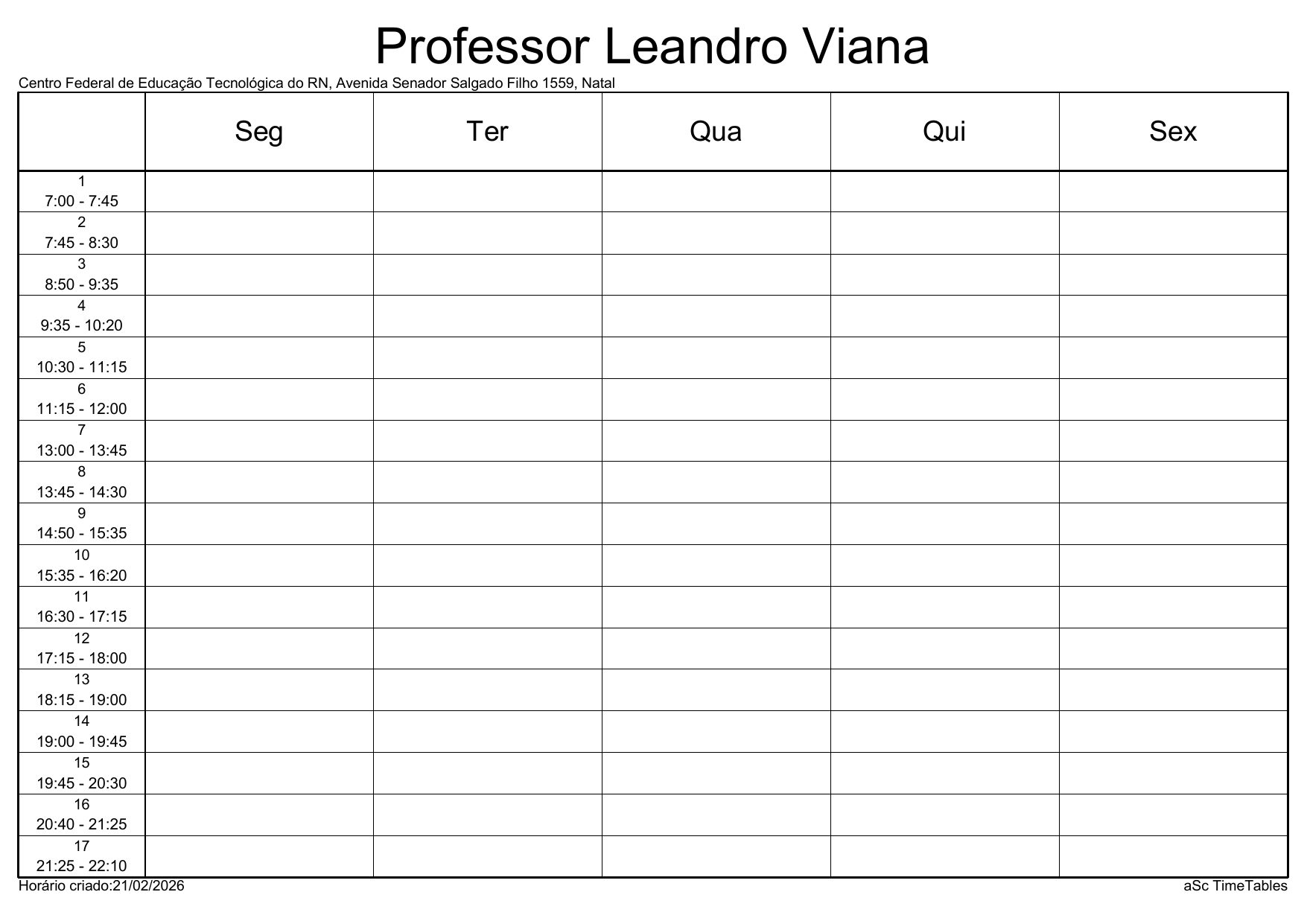 IFRN/Parnamirim: Horário Acadêmico