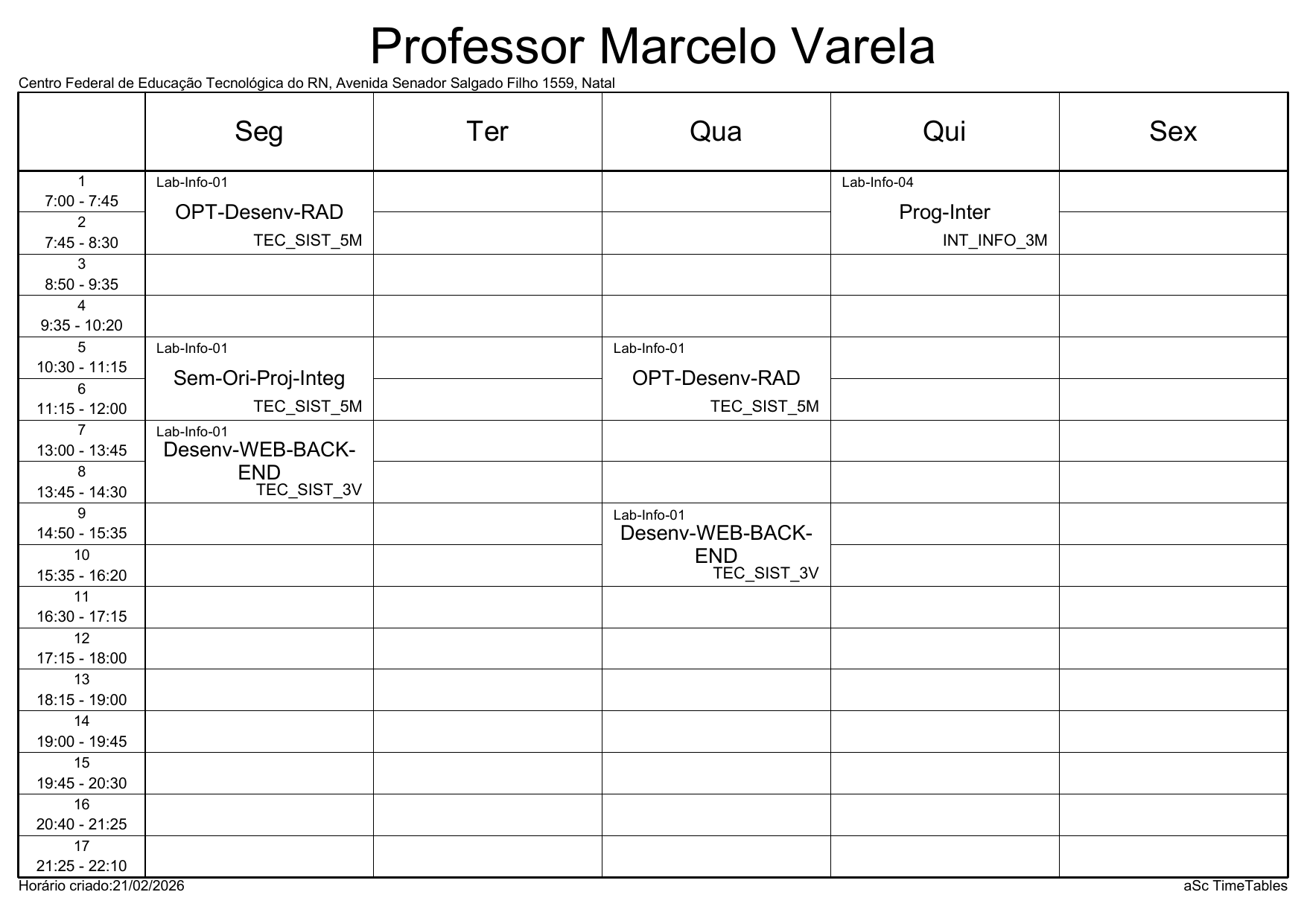 IFRN/Parnamirim: Horário Acadêmico