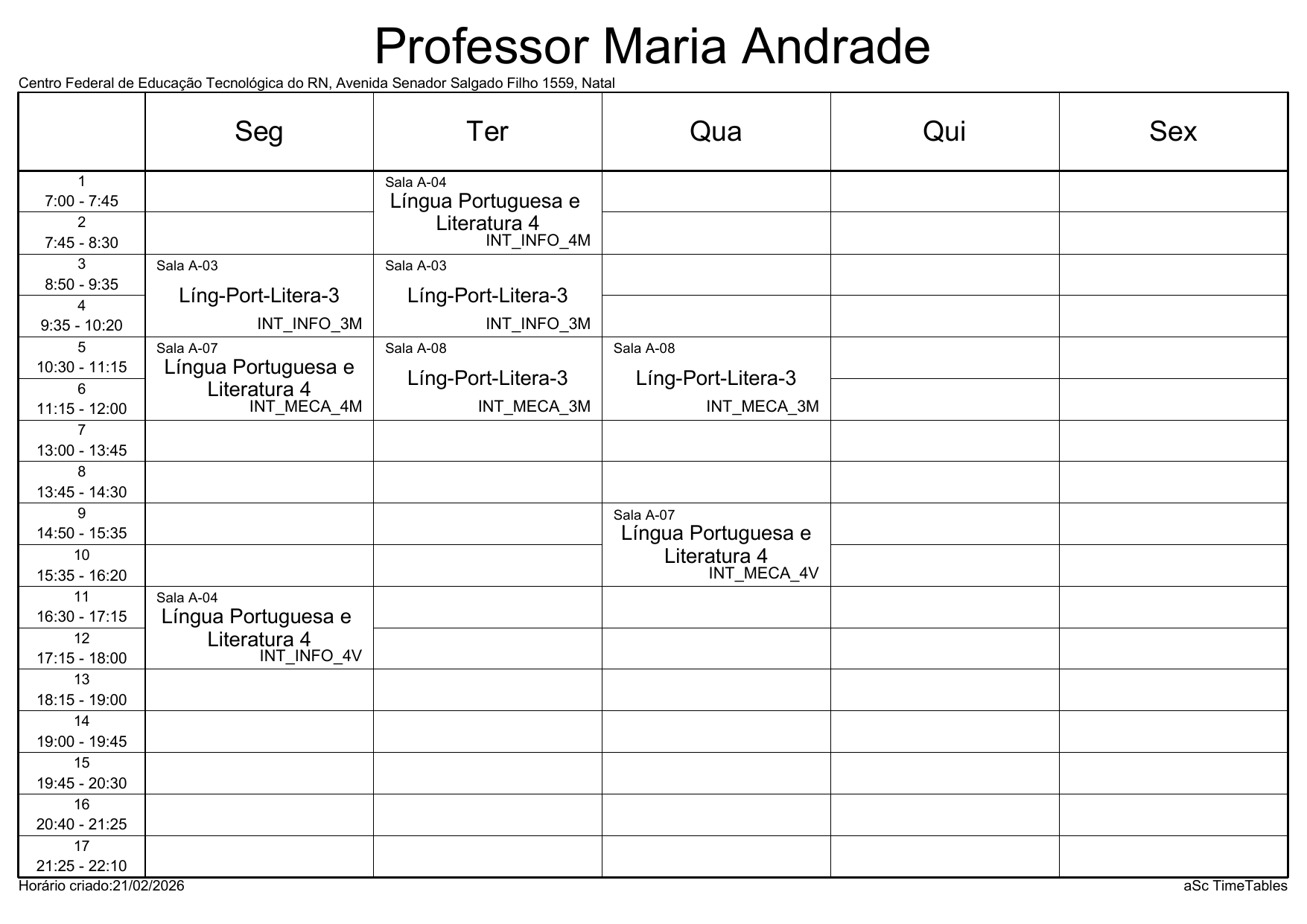 IFRN/Parnamirim: Horário Acadêmico