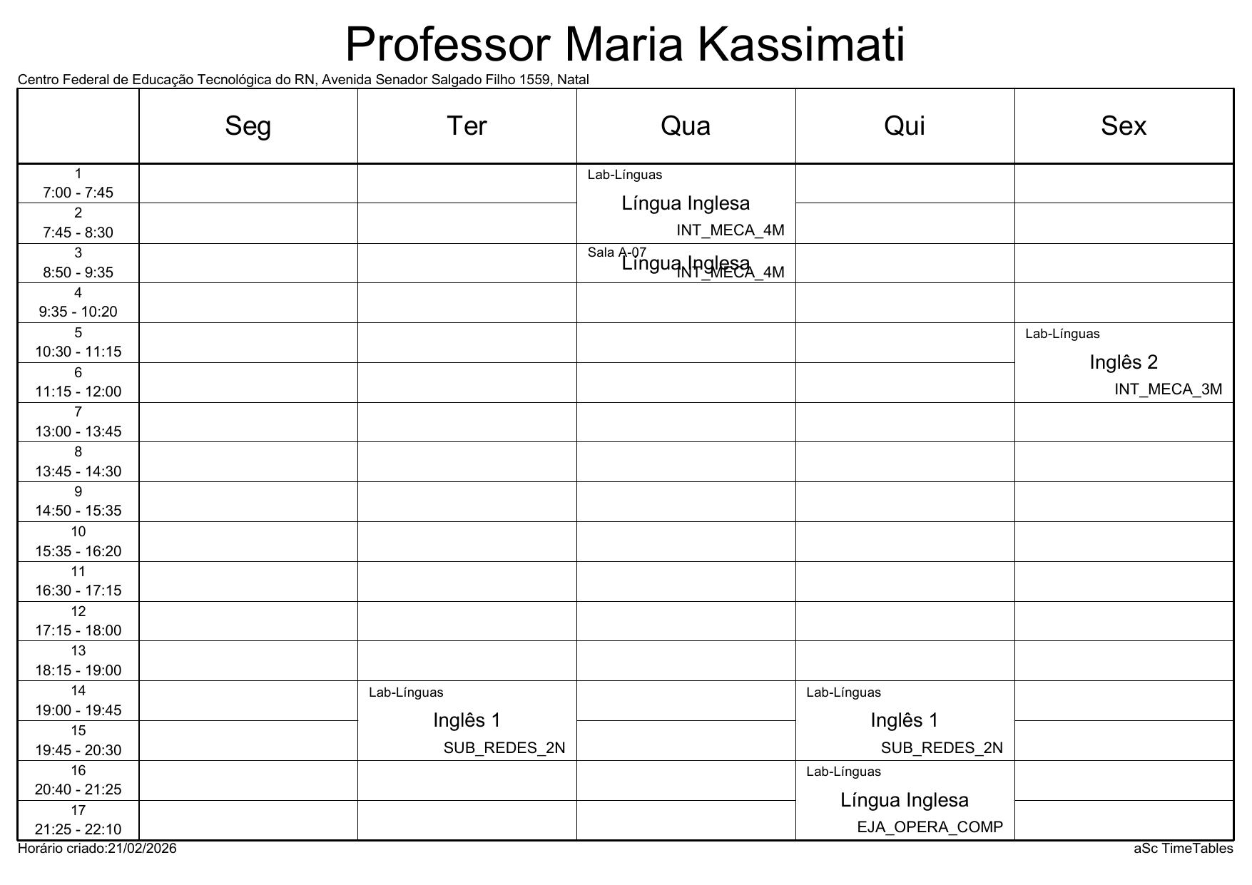IFRN/Parnamirim: Horário Acadêmico