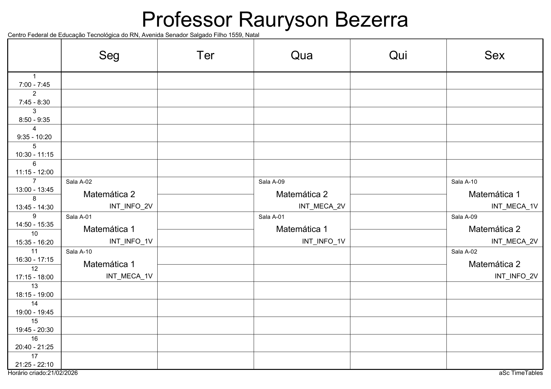 IFRN/Parnamirim: Horário Acadêmico