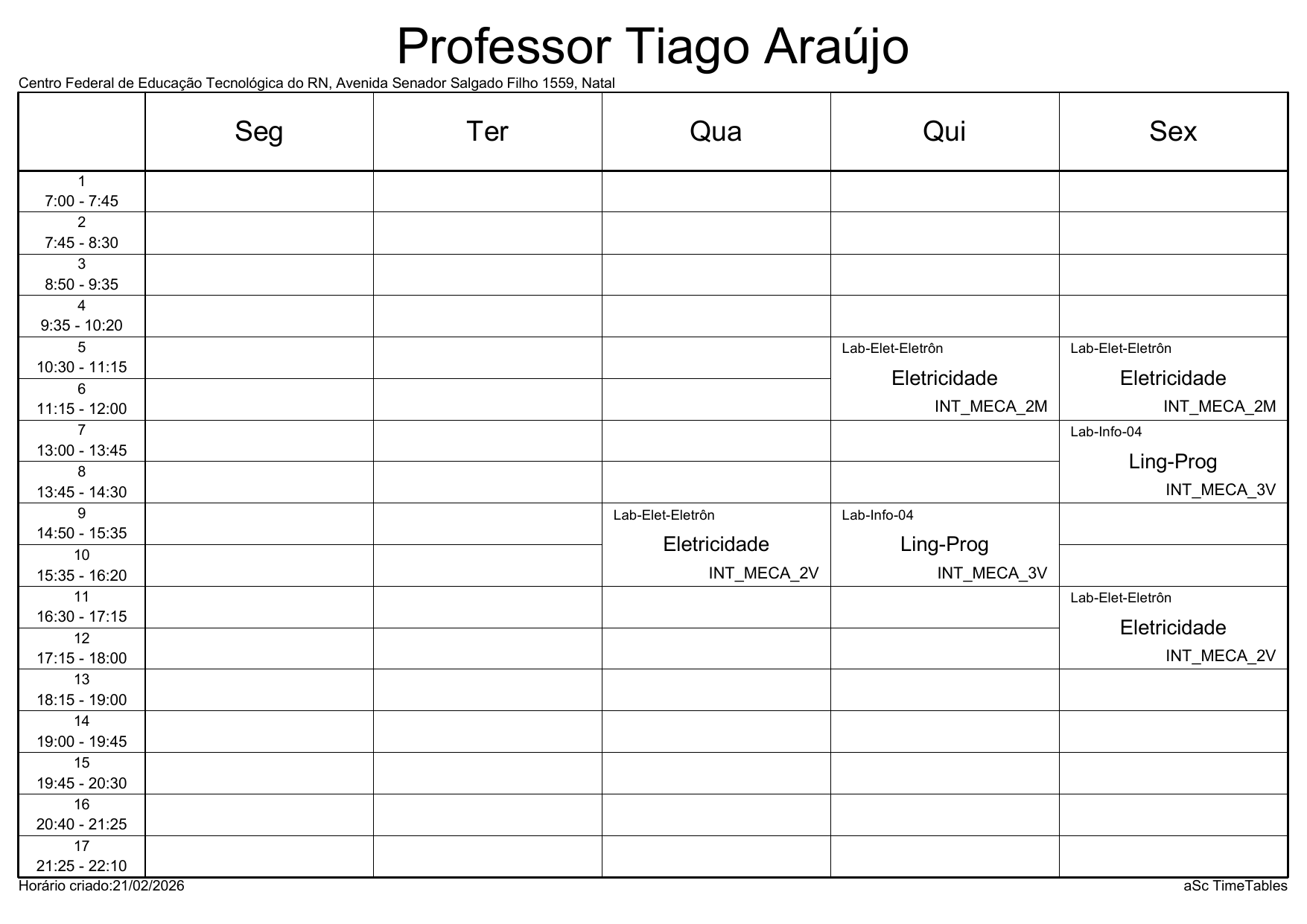 IFRN/Parnamirim: Horário Acadêmico
