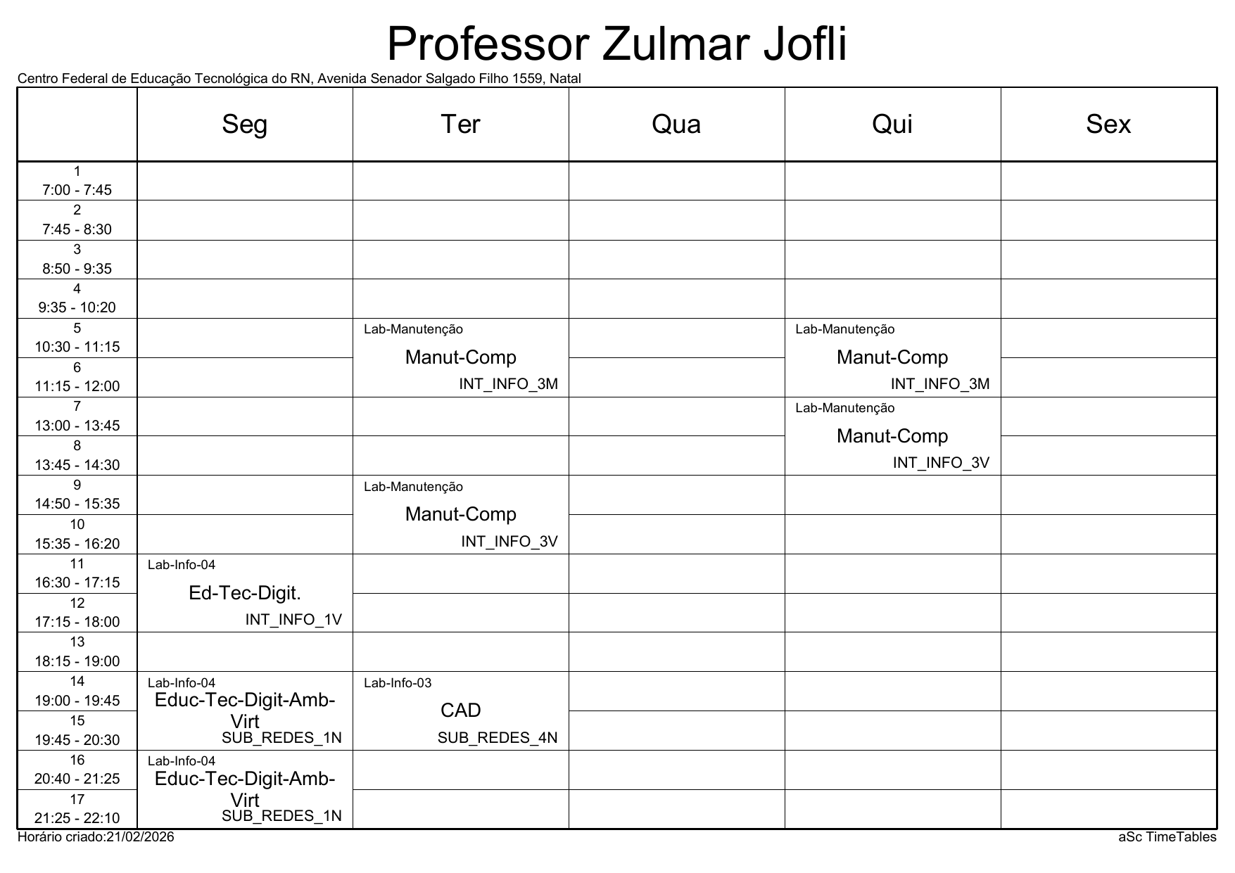 IFRN/Parnamirim: Horário Acadêmico