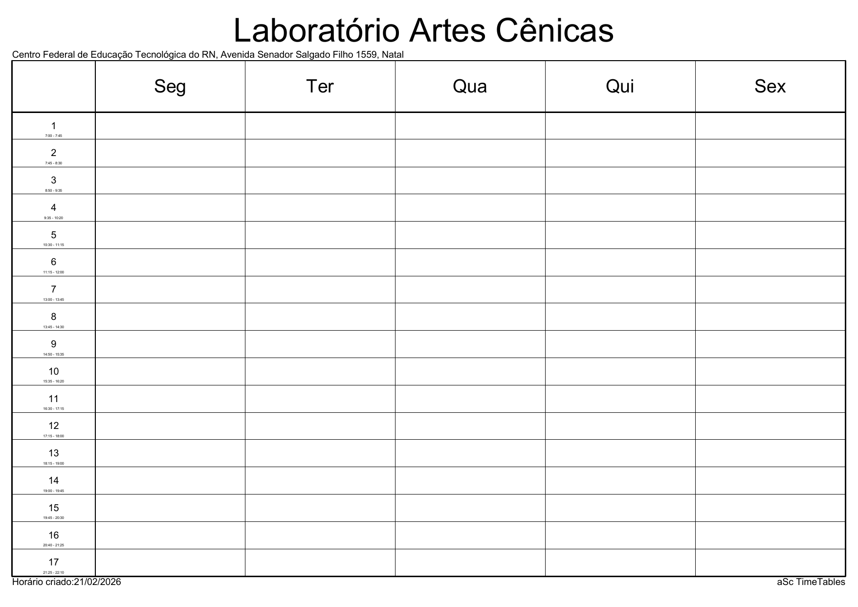 IFRN/Parnamirim: Horário Acadêmico