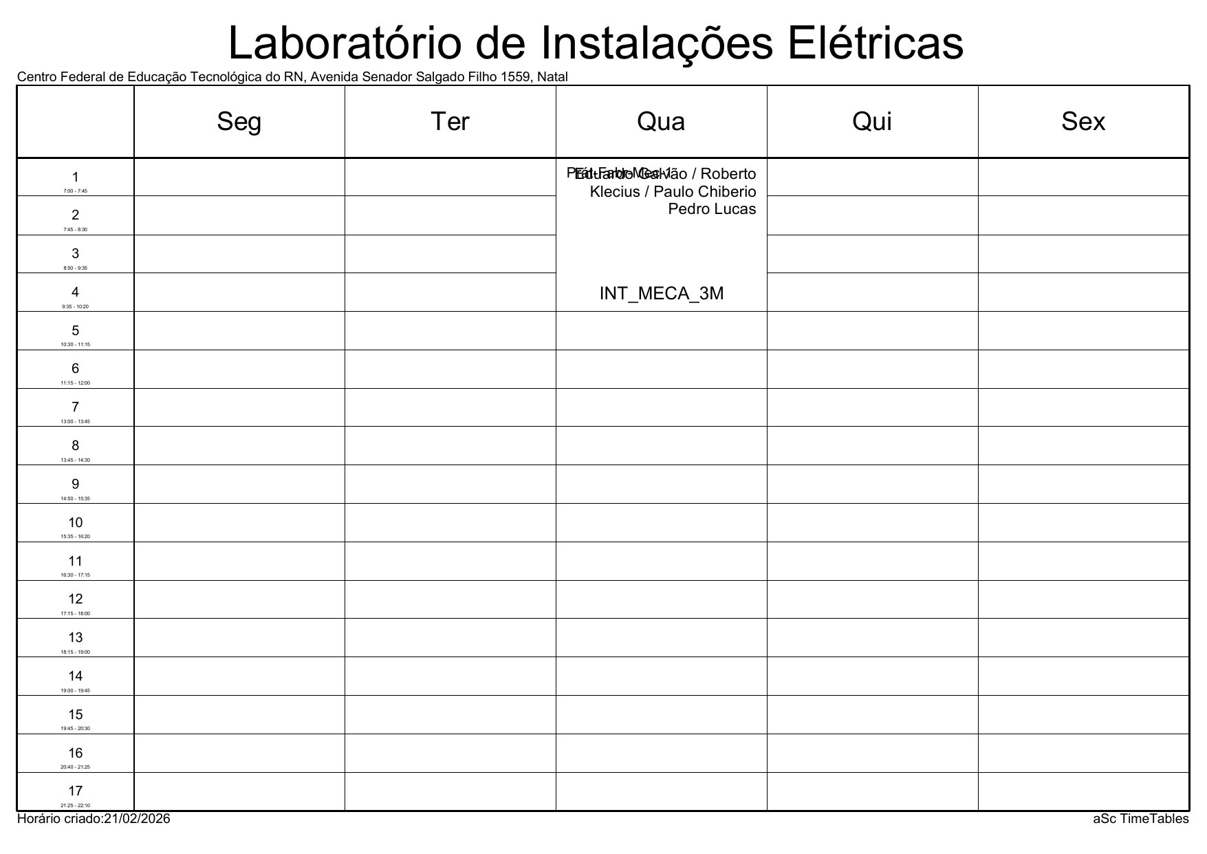IFRN/Parnamirim: Horário Acadêmico
