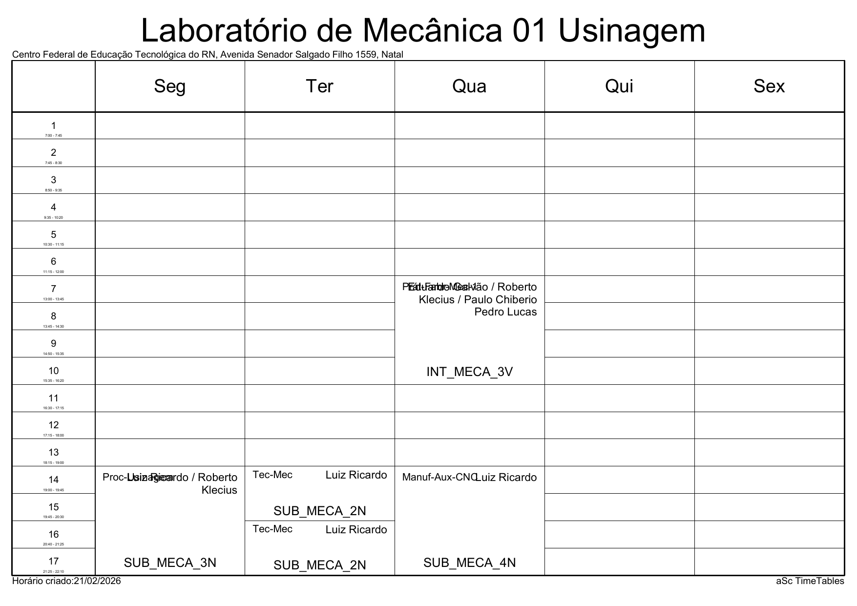 IFRN/Parnamirim: Horário Acadêmico