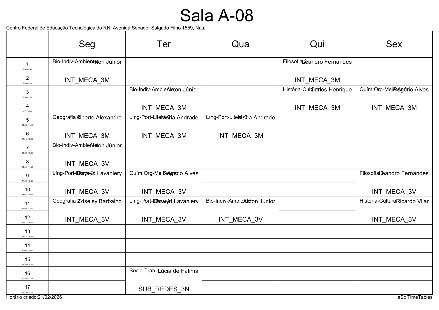 IFRN/Parnamirim: Horário Acadêmico