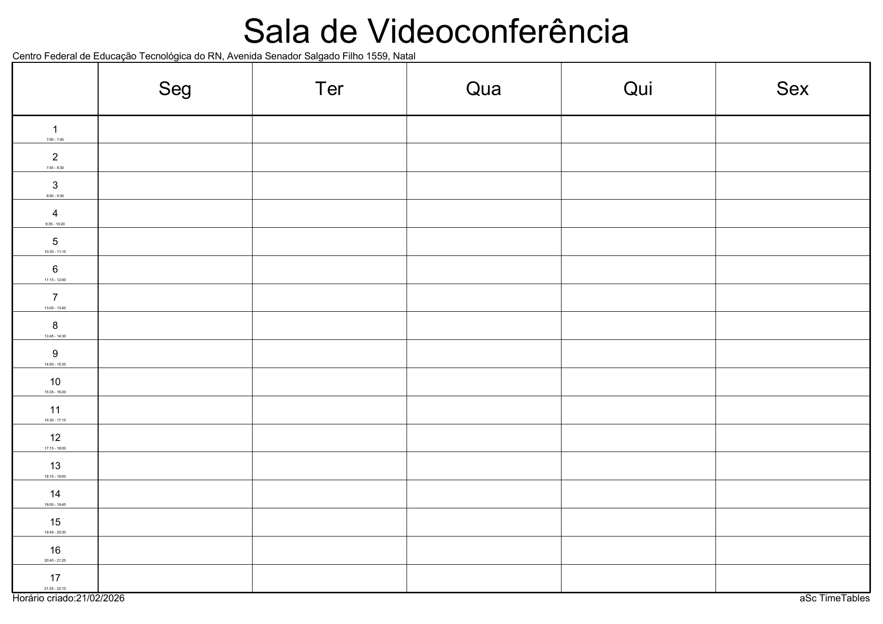 IFRN/Parnamirim: Horário Acadêmico