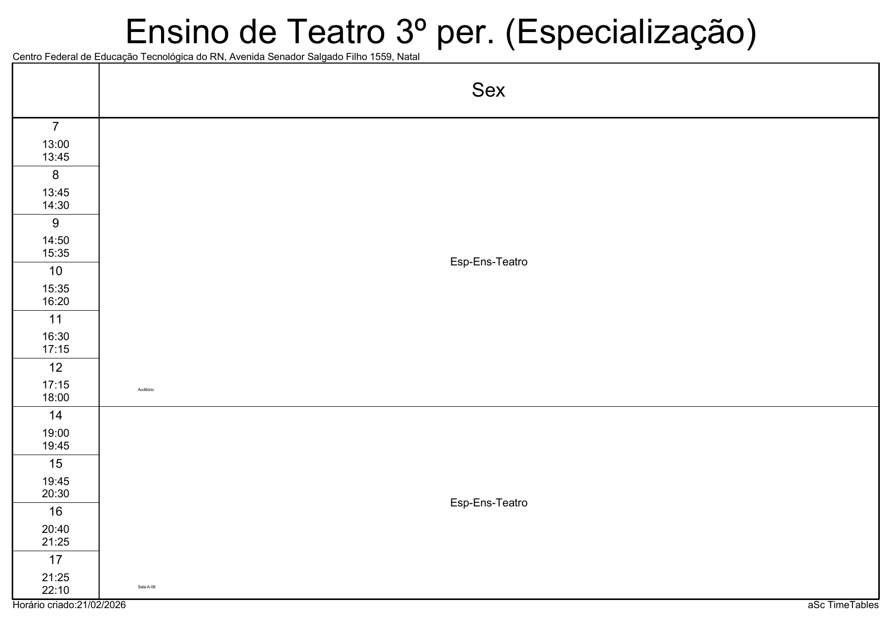 IFRN/Parnamirim: Horário Acadêmico