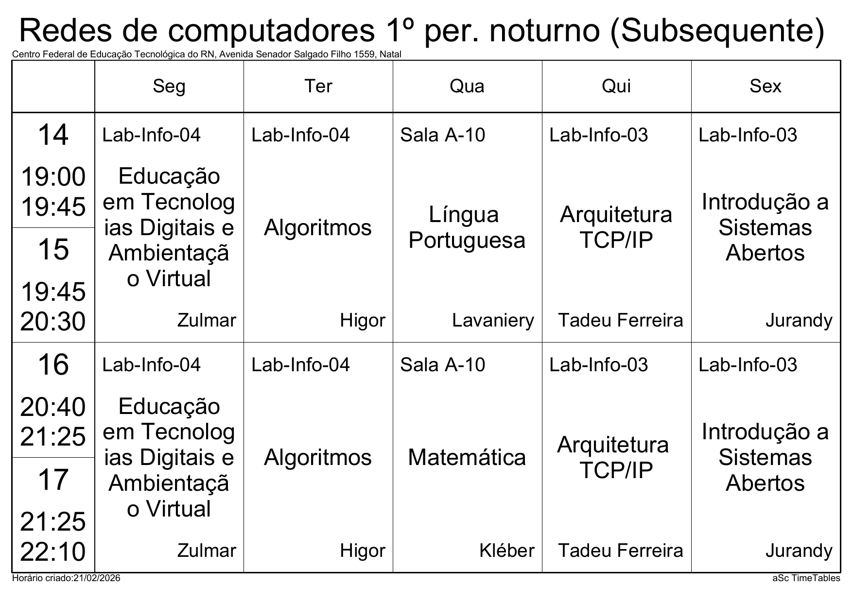 IFRN/Parnamirim: Horário Acadêmico