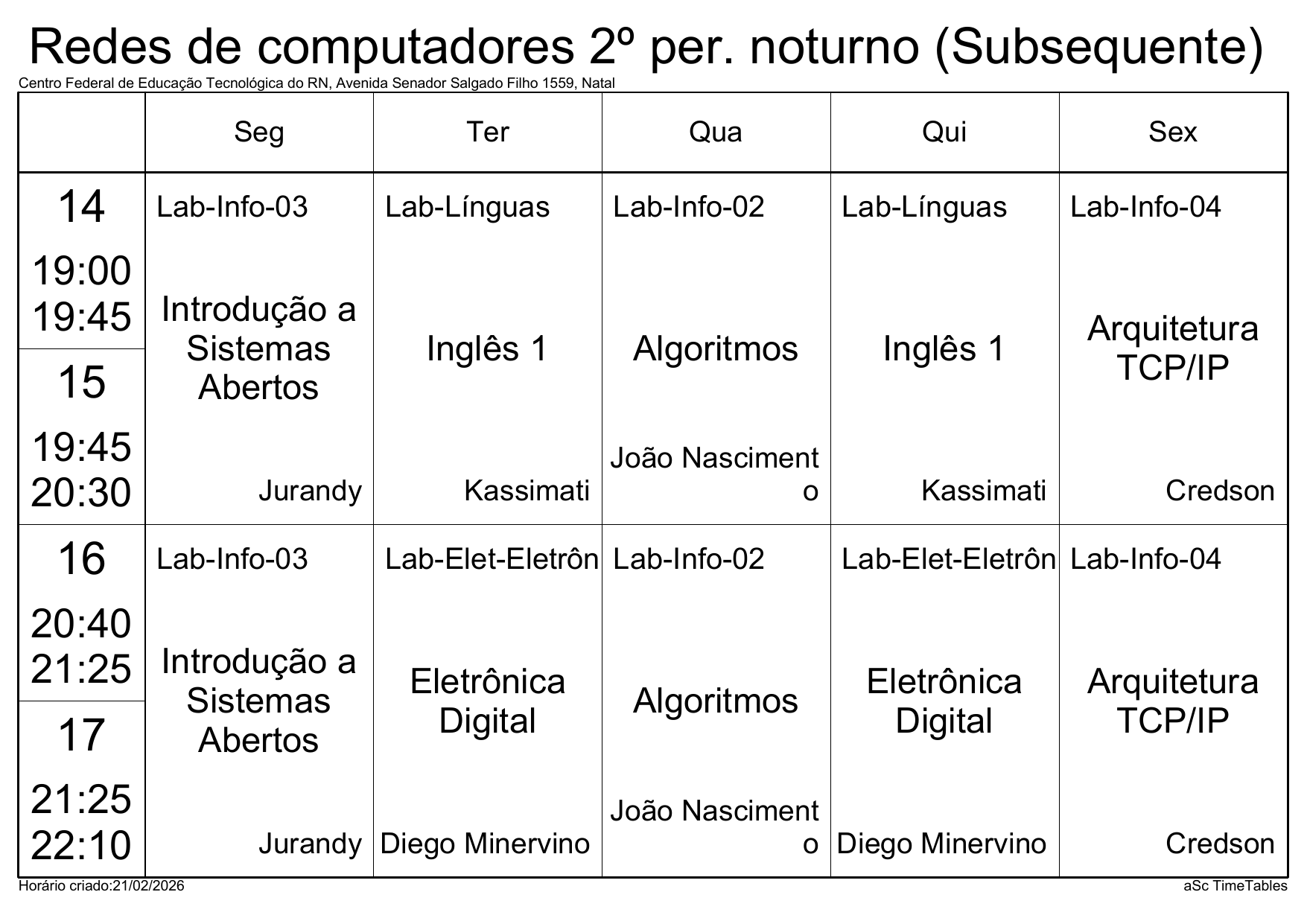 IFRN/Parnamirim: Horário Acadêmico
